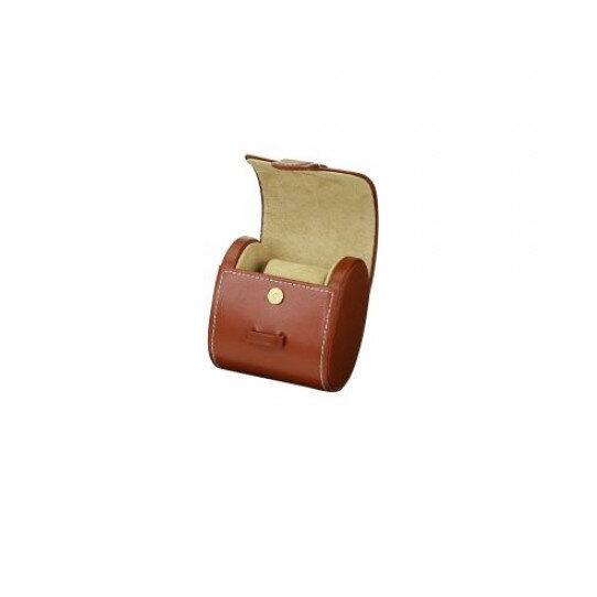 Cutie elegantă maro pentru depozitarea unui ceas,  din piele matlasată cu cusături contrastante bej și interior în aceeași culoare de la brandul german Friedrich Ledervaren. Partener ideal la drumuri.