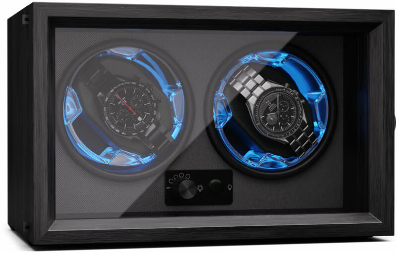 Klarstein Brienz 2, cutie de întors ceasuri, 2 ceasuri, 4 moduri, aspect de lemn, lumină interioară albastră (WW3-UhreBrien2-BK) (WW3-UhreBrien2-BK) - electronic-star