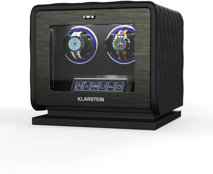 Aparatul de întors ceasuri Klarstein LuminousTime oferă o soluție luxoasă și silențioasă pentru a vă asigura că ceasul dvs. automat este întotdeauna gata de utilizare. Aparatul de întors ceasuri LuminousTime de la Klarstein impresionează prin designul său elegant realizat din piele vegană și sticlă combinată cu decorațiuni din oțel inoxidabil. Motorul japonez silențios asigură o funcționare silențioasă, ideală pentru dormitoare și birouri. Datorită pernițelor flexibile, se adaptează majorității ceasurilor și poate fi controlat prin intermediul unui ecran LCD tactil sau al unei telecomenzi. Cu 20 de setări TPD diferite și trei direcții de rotație, puteți asigura o îngrijire perfectă pentru ceasul dvs. mecanic. Luminile RGB integrate și LED-urile albe vă prezintă, de asemenea, ceasul în stil. Klarstein LuminousTime trebuie să fie rulat în cicluri regulate. Așteptați cu răbdare ca dispozitivul de întors ceasuri să se oprească după câteva minute, deoarece pornește automat la fiecare oră. Experimentați îngrijirea supremă pentru ceasul dvs. și cumpărați Klarstein LuminousTime acum!