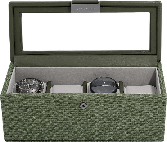 Stackers Cutie mică pentru ceasuri Stackers Canvas cu patru compartimente verde (76406)
