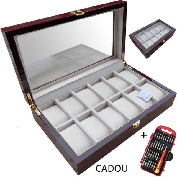 Cutie depozitare 12 ceasuri - LEMN  = SUPER CALITATE = - Cu acest cadou statisfaceti si cele mai exigente gusturi - Un produs de calitate premium, ce se incadreaza excelent in birou. Colectia personala de ceasuri va fi protejata de accidente si de praf. Cei ce va calca pragul va pot admira colectia. Privirile vor fi atrase atat de calitatea finisajelor precum si de elementele metalice aurii.